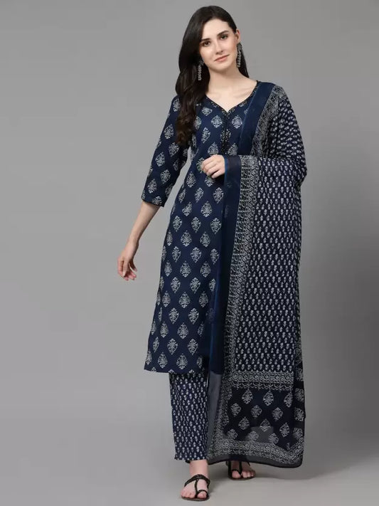 Women Pure Cotton Kurta Pant Dupatta Set