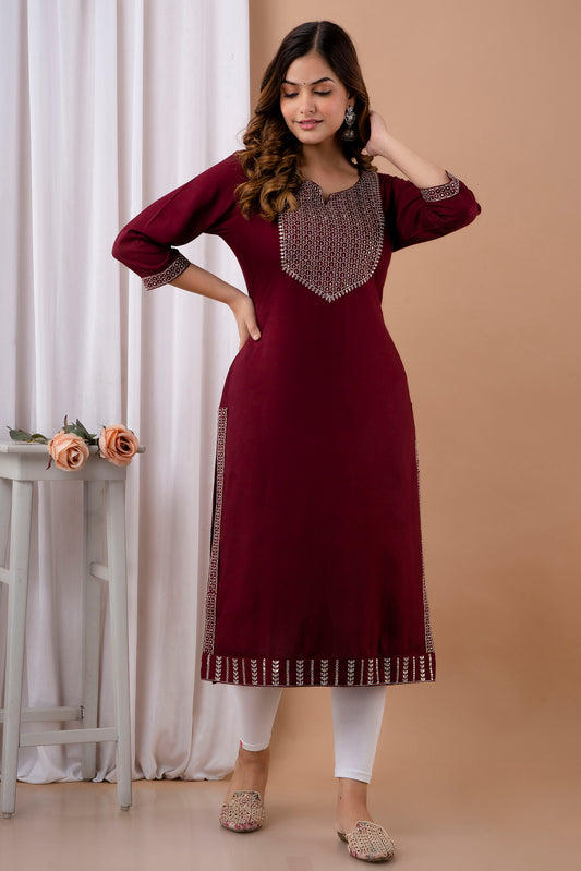 Rayon Maroon sequence kurta