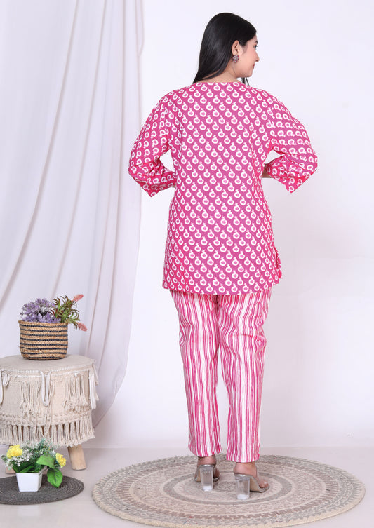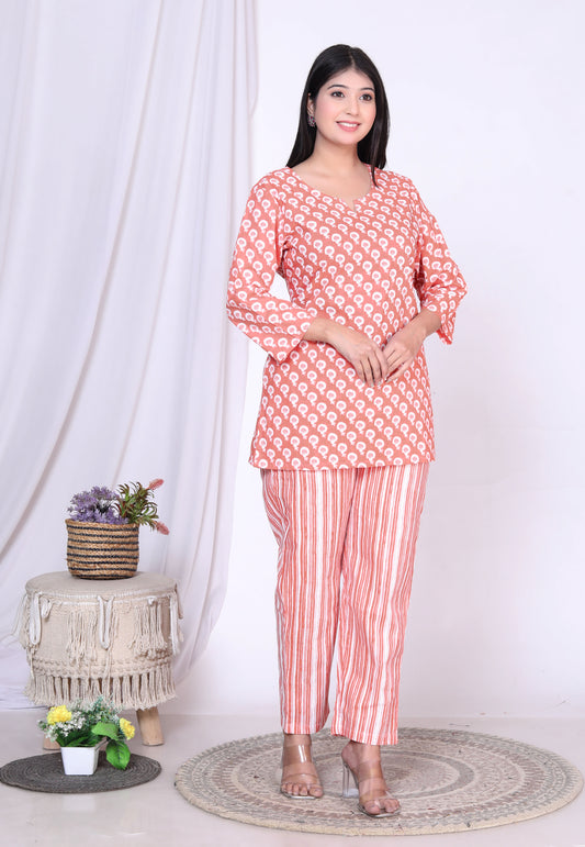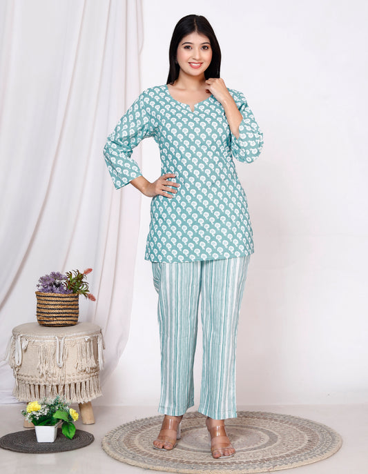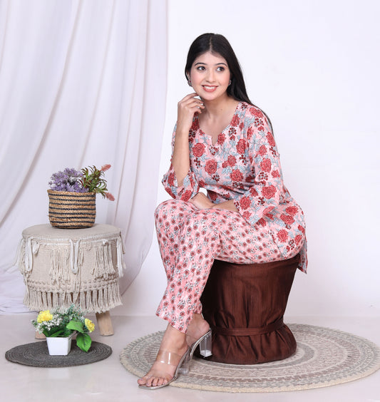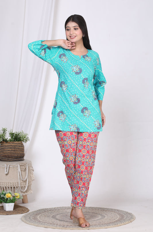 Women Top & Pyjama Set Multicolor Printed