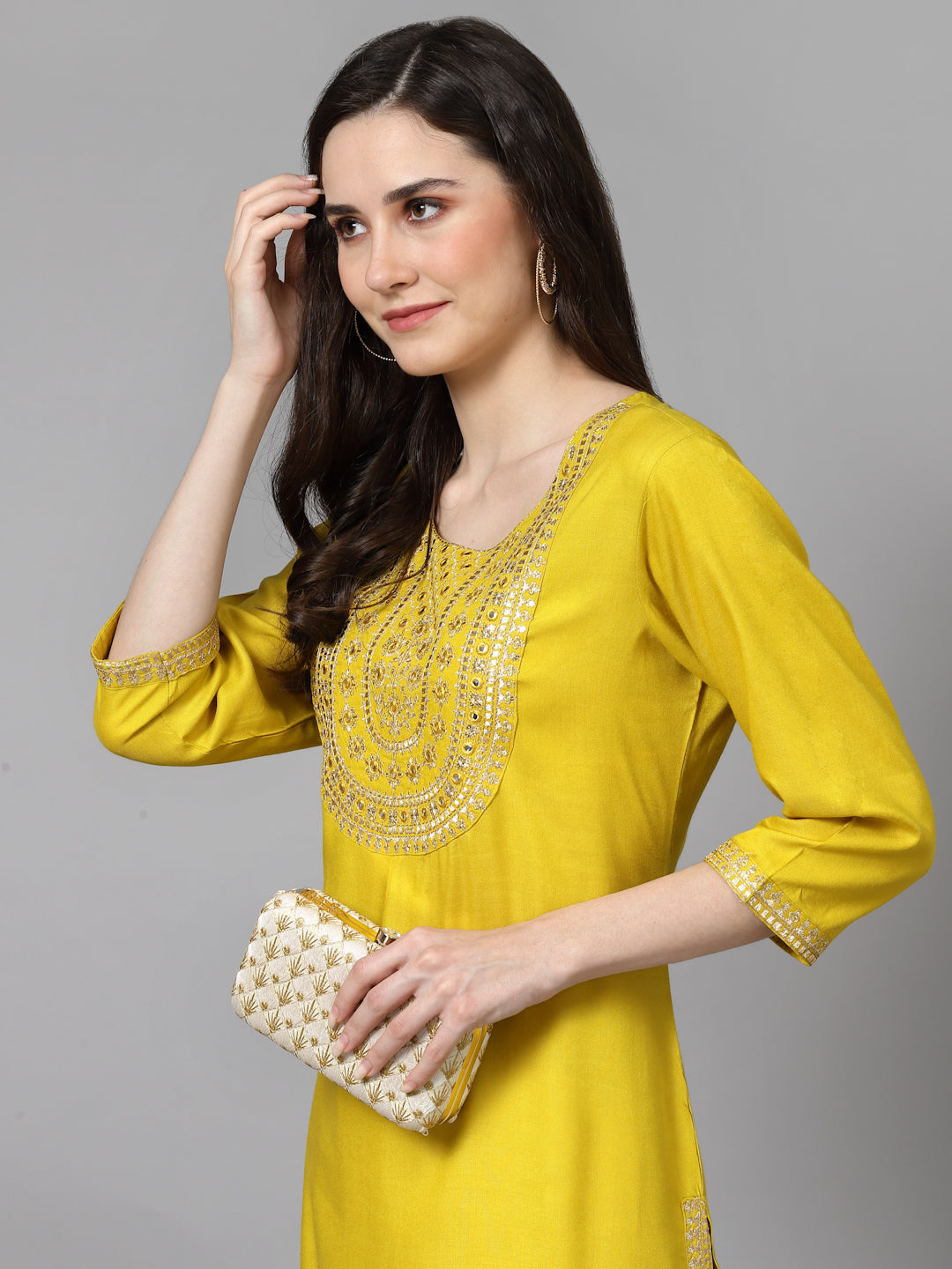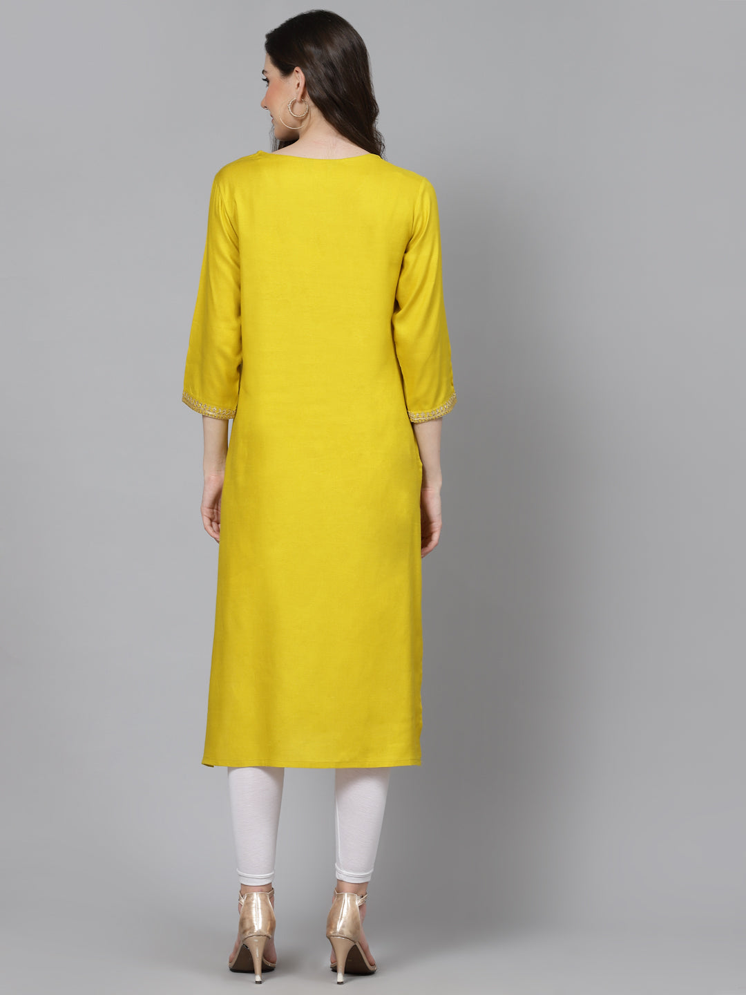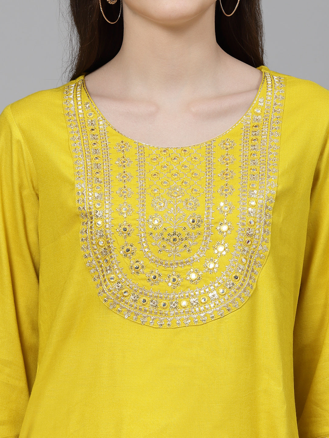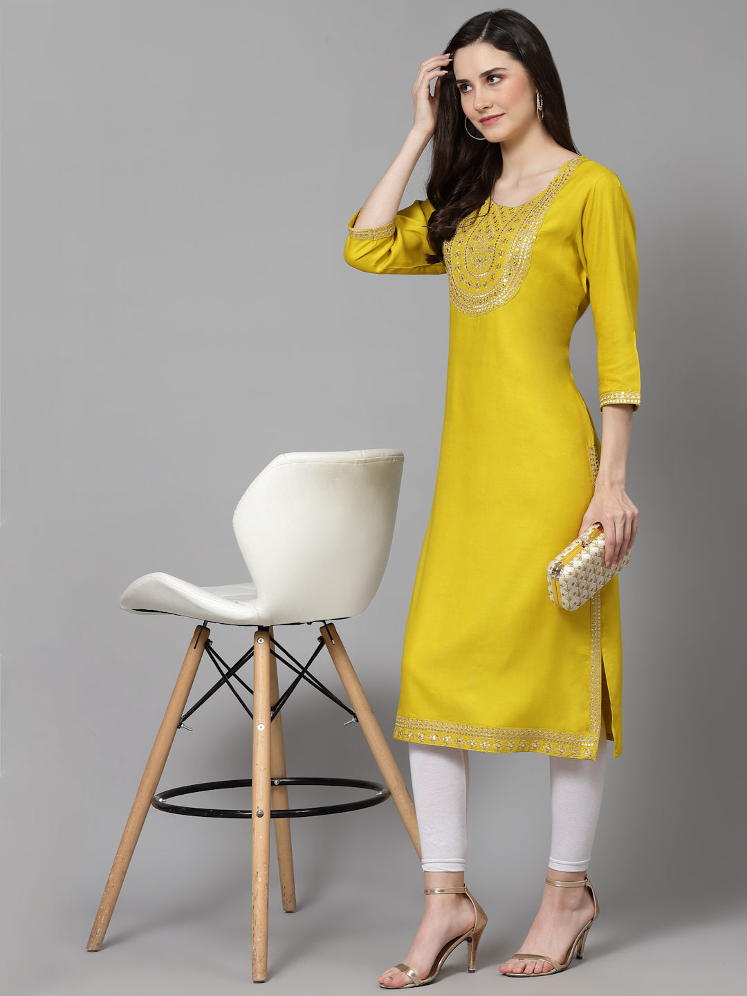 Women Embroidered Viscose Rayon Yellow Kurtis