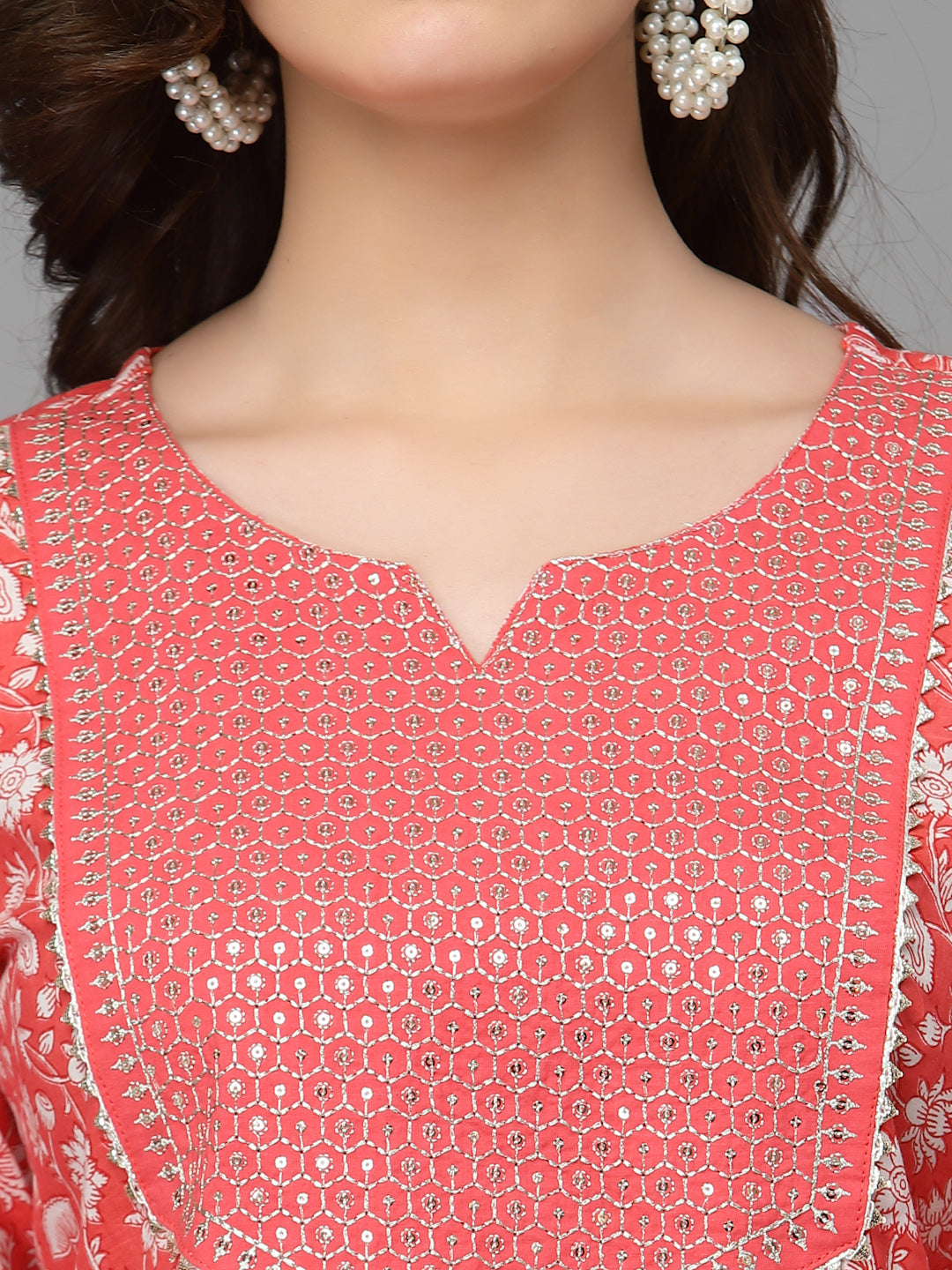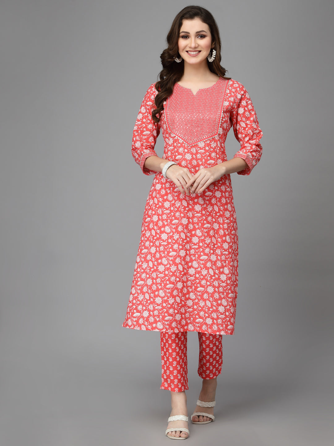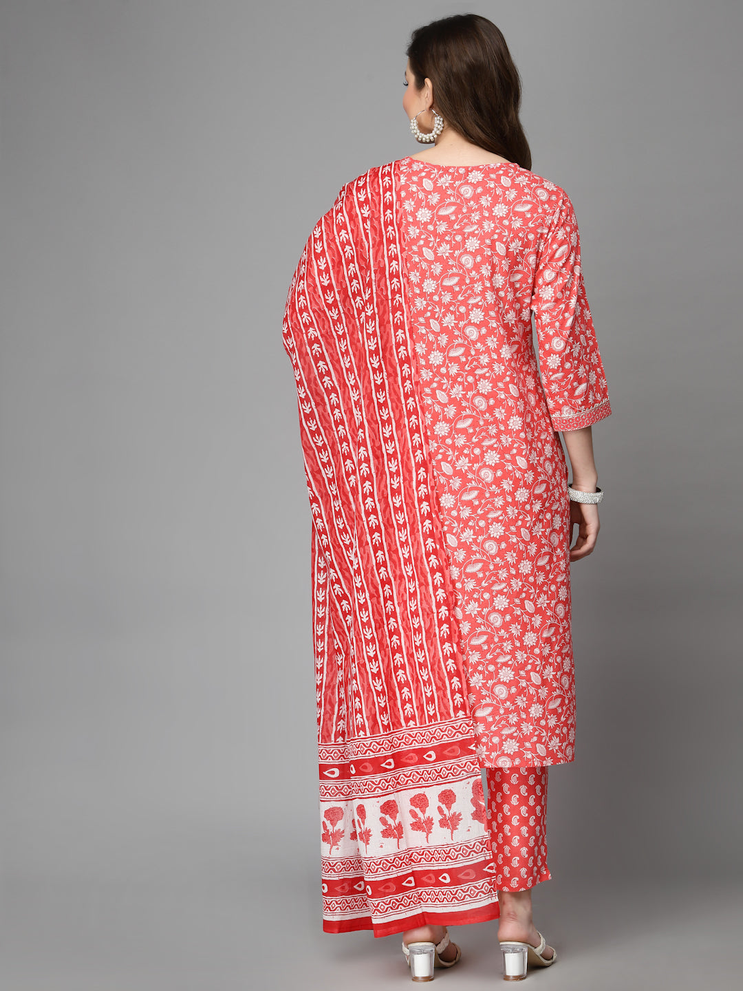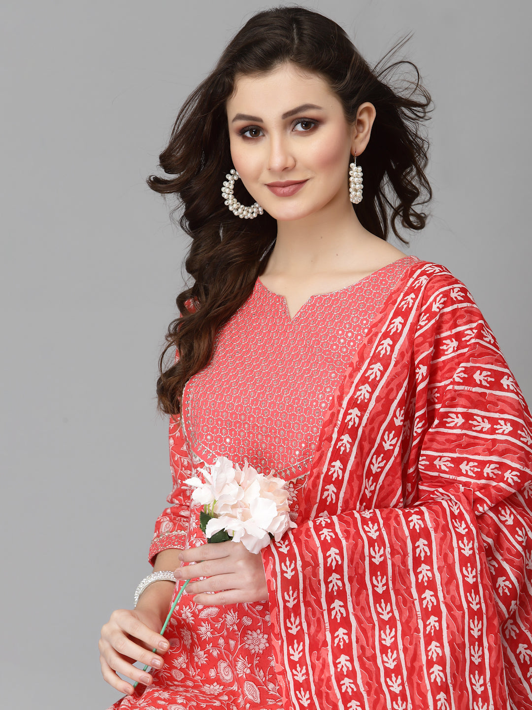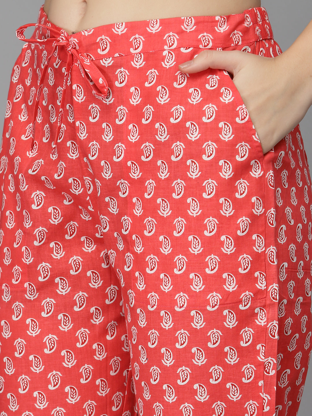 Women Pure Cotton Red Kurta Pant Dupatta Set